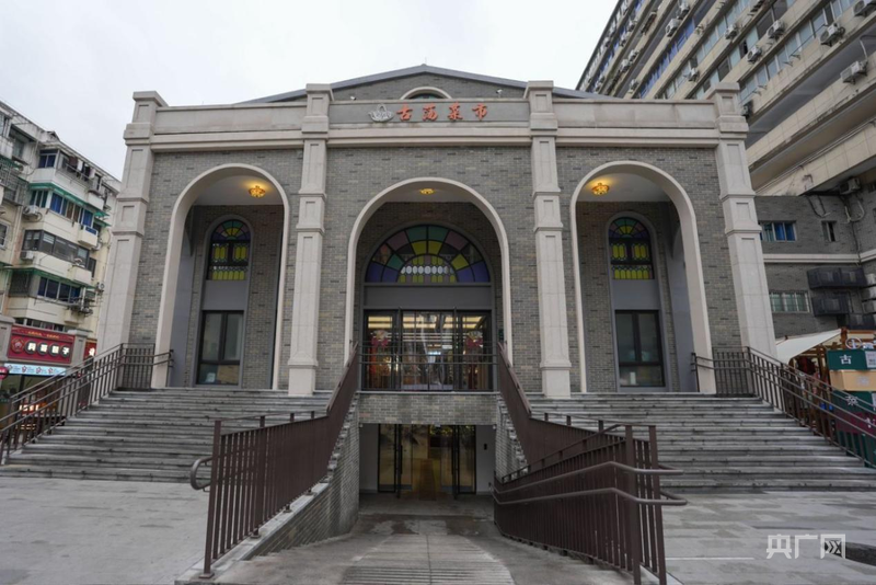 郁红梅介绍,菜市场是2024年3月底开始翻新的,历经九个月的时间,2025年元旦正式对外营业。改造后的古荡菜市采用“民国风”设计,花色地砖、几何线条的彩色玻璃窗。买菜顺便喝杯咖啡,挑选食材还能拍一组大片,很多年轻人哪怕赶时间,也要拖着行李箱来逛一逛。